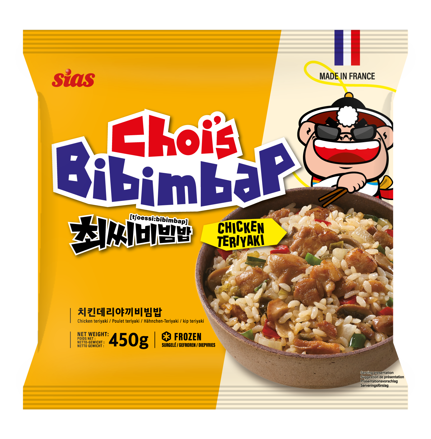 Riz cuit 62,4%* [eau, riz], émincé de poulet certifié Halal 9%* (origine : UE), sauce teriyaki 7,8%* [sauce SOJA (eau, sauce SOJA, farine de BLÉ (GLUTEN), sel), eau, assaisonnement mirin, bouillon de volaille, sucre, sel, fécule, assaisonnement à base de vinaigre de riz, arôme naturel], oignon, poivron rouge, champignon de paris, huile de tournesol, jalapenos vert, ail, SÉSAME grillé, gingembre, sel, sucre, fécule. *dans le produit fini