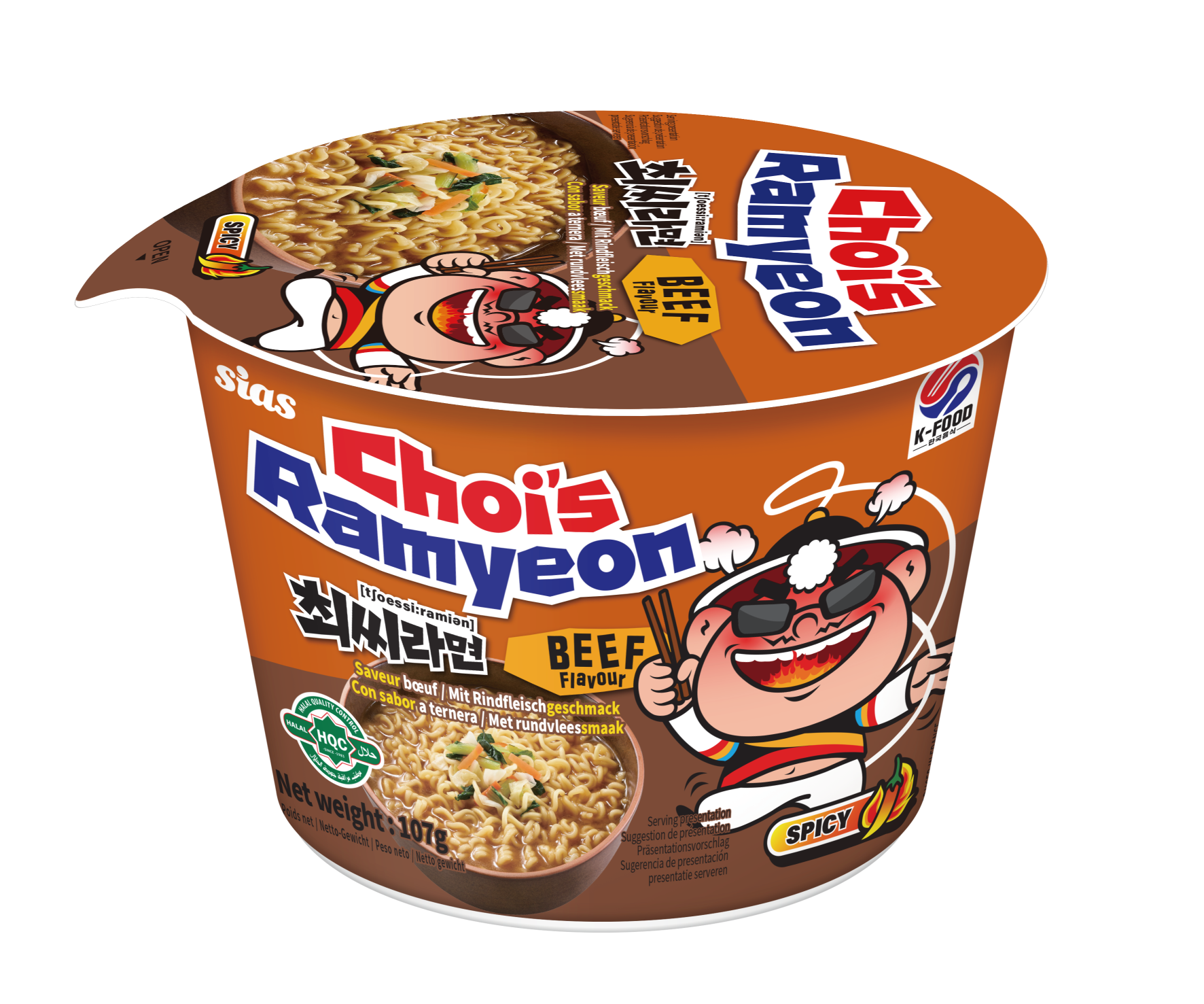 Nouilles de blé instantanées avec une sauce d’assaisonnement saveur bœuf.